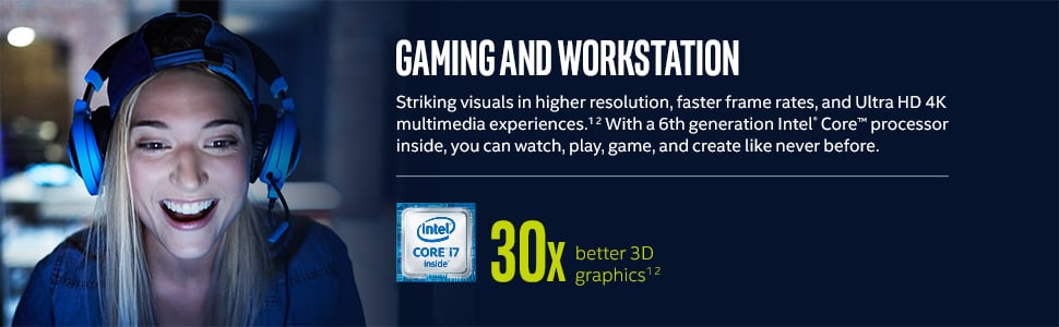 Den omdesignade Intel NUC'en med 6'e generationens Intel Core i7 processor samt Intel Iris Pro grafik ger dig upp till 30 gånger bättre grafikprestanda för att kunna spela i högre upplösning och med höga FPS.