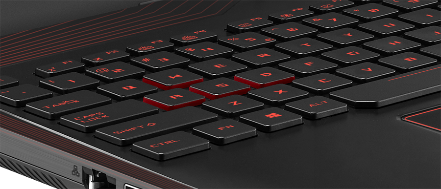 Tangenterna på ASUS Strix FX553 är enkla att trycka på med en låg profil, perfekt respons och 2,5 mm tangentdjup. Den märkta WASD-tangentgruppen och det numeriska tangentbordet ger dig snabb och full kontroll. Ett tangentbord med en fast konstruktion i ett stycke är belyst av en alltid närvarande Strix-orange bakbelysning. ASUS Strix FX553 har desutom ASUS AURA där du kan anpassa ljuseffekter för varje tangent efter dina egna önskemål. Du kan även programmera olika färger för enskilda tangenter