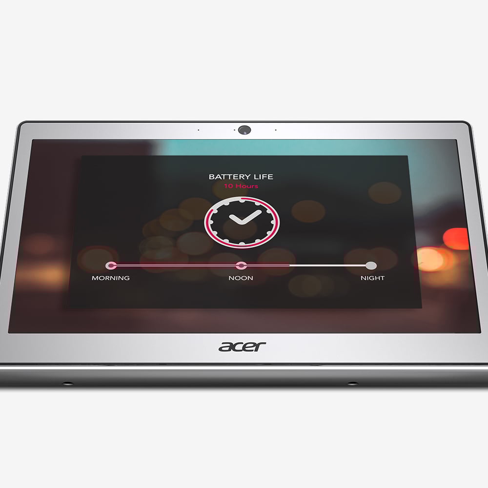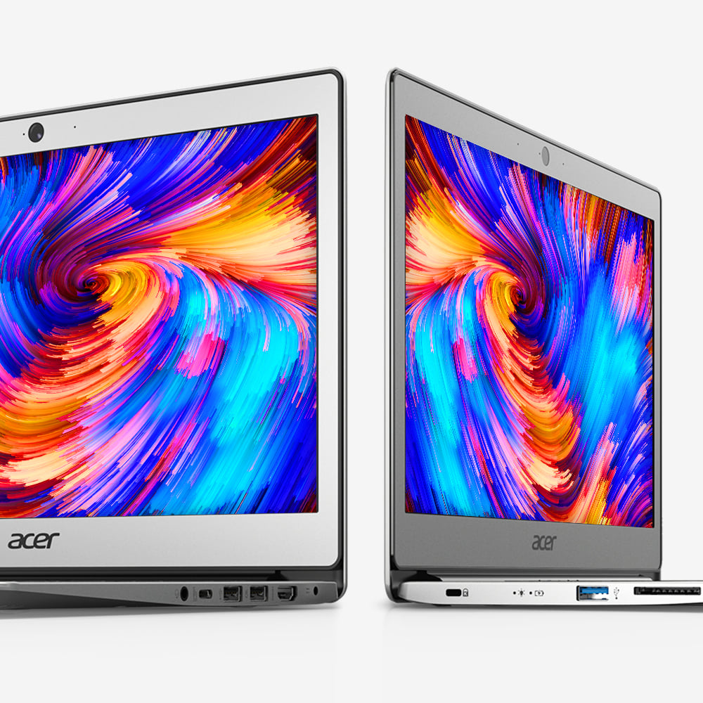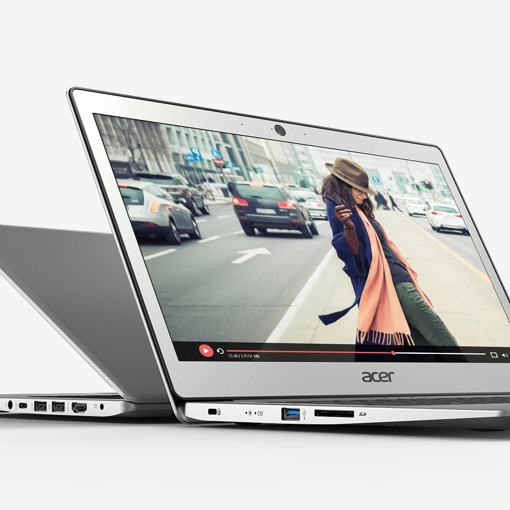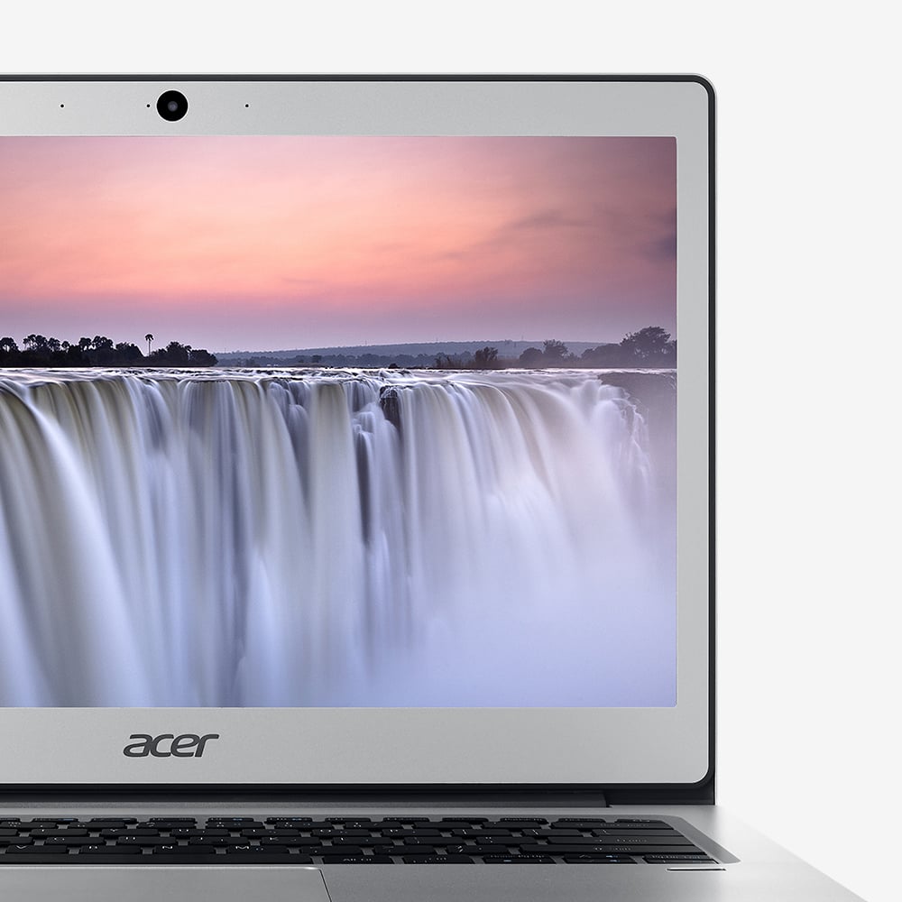 Skärmen på 13,3” med sina djupa färger och teknologier som Acer ExaColor™ och ComfyView™ garanterar att du får en detaljrik bildkvalitet dygnet runt