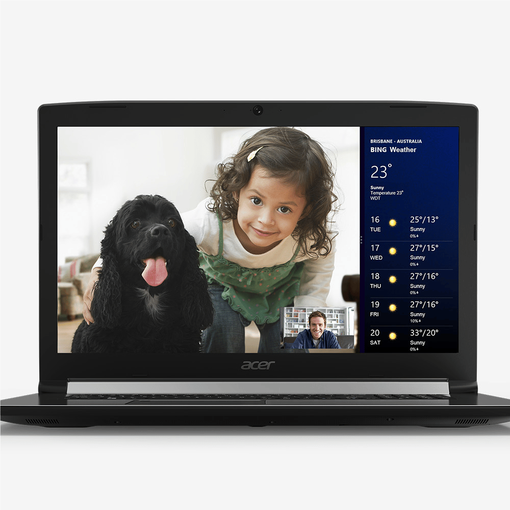 Aspire 7 är utrustad med den senaste 8:th gen Intel-processorn. Du får även ett dedikerat grafikkort från Nvidias senaste Pascal-arkitektur i Geforce-serien, vilket gör att du kan spela alla dina favoritspel