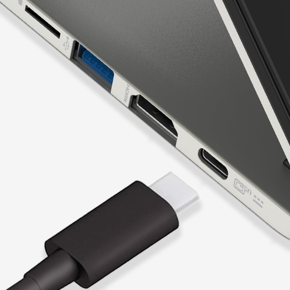 USB 3.1 Type-C™-porten ger dig blixtsnabb dataöverföring medan 3.0-porten kan ladda dina enheter medan din Chromebook är stängd.