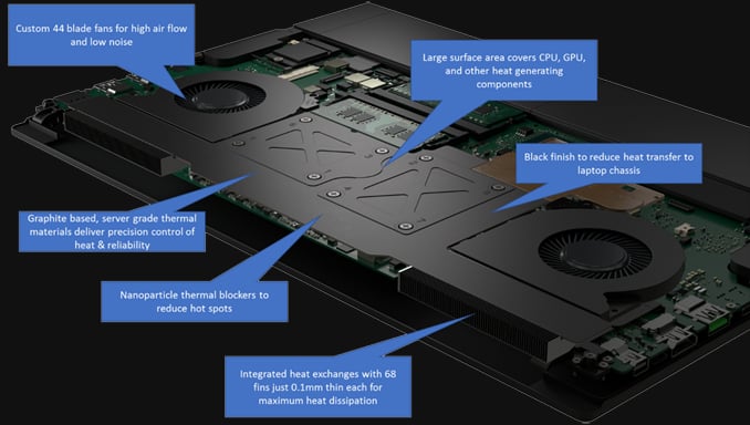 Till skillnad från traditionella kylmetoder i andra laptops har Razer Blade ett kylsystem som använder en anpassad ångkammare och avancerade termiska material för att effektivt och tyst sprida värmen samt maximera prestanda och användarvänlighet.