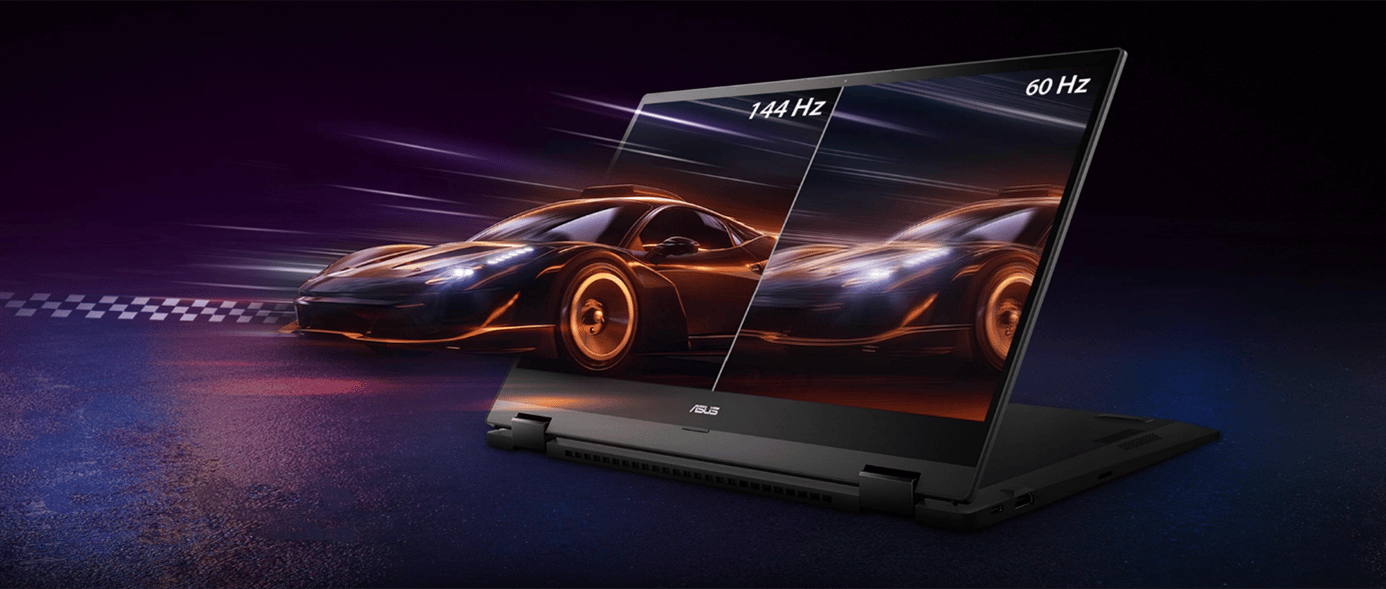 Fantastiska gaming- och underhållningsupplevelser handlar om inlevelse, och detta kräver grafik med hög skärpa och bra flyt. Därför har ASUS Chromebook Vibe CX55 Flip en Full HD-pekskärm med snabb bilduppdatering på 144 Hz som ger levande, verklighetstrogen grafik som inte bli suddig eller laggar – och som drar dig djupare in i den virtuella världen. Den har även en tresidig NanoEdge-skärm som maximerar skärmytan och förhållandet mellan skärm och yttermått, vilket gör det extra lätt att leva sig in i grafiken.