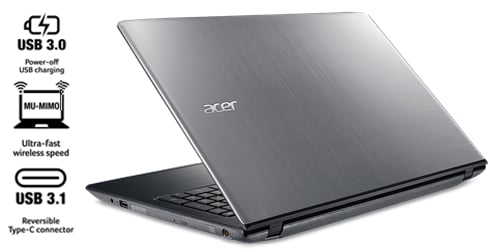 Acers Precision Touchpad med ökad känslighet och stöd för flera gester såsom scroll och zoom ger en bättre och smidigare erfarenhet när det kommer till pekplattan. Dessutom har datorn stöd för AC-wlan med MU-MIMO-stöd som ger upp till 3 gånger snabbare trådlösa hasigheter än den tidigare generationen Wi-Fi. I anslutningsväg finns både VGA, HDMI, USB 2.0, USB 3.0 och USB Type-C.