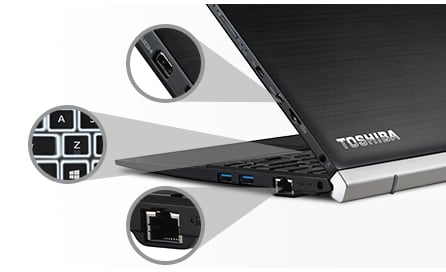 När du sitter vid skrivbordet eller i ett möte, kör en presentation eller bara är på språng kan du tack vare alla de anslutningsalternativ Portégé Z20t-B erbjuder ansluta till den kringutrustning du behöver. Du kan ansluta till en andra skärm via HDMI- eller RGB-porten samt nå nätverket genom porten för gigabit-LAN. Du har alltid en bärbar dators imponerande prestanda till hands i dina dagliga uppgifter. Det finns dessutom ett bakgrundsbelyst tangentbord så att det ska vara lättare att skriva i miljöer med lite ljus.