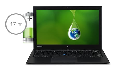 I dagens läge använder vi konstant våra datorer och då måste din enhet klara tuff, daglig användning. Portégé Z20t-B har särskilt testats för upprepad användning och har batteritid på upp till 17 timmar*. Det är kraft som räcker till två hela arbetsdagar, vilket innebär att du inte behöver ladda lika ofta. Portégé Z20t-B är alltså hundraprocentigt effektiv. Den är EPEAT Gold-certifierad och har den senaste rankingen enligt Energy Star, alltså en produkt som är att föredra ur miljöhänseende. Med programmet Toshiba Eco Utility kan du göra datorinställningar för att optimera och anpassa energiförbrukningen.