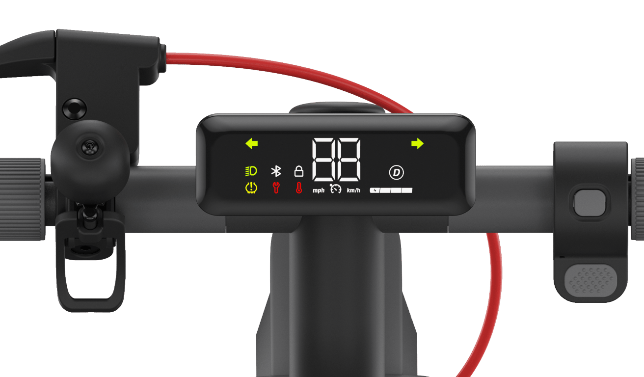 Få en klar vy över all data ifrån din scooter på den högupplösta 3.5”-displayen som sitter monterad på styret. Displayen informerar dig om status för batteriet, vilket körläge som är inställt. Det finns tre stycken körlägen att fälja mellan, gång, standard och sport. Mitt på displayen visas körhastigeten i realtid.