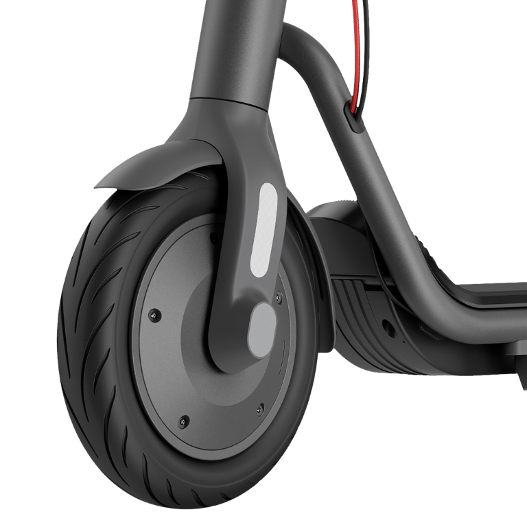 De 10” stora pneumatiska däcken innebär att du får en stöt- och vibrationsdämpande åktur. Scootern har en vikt på 17.8kg, går enkelt att fälla ihop och är byggd med en vattentät design som är IP55-klassad.