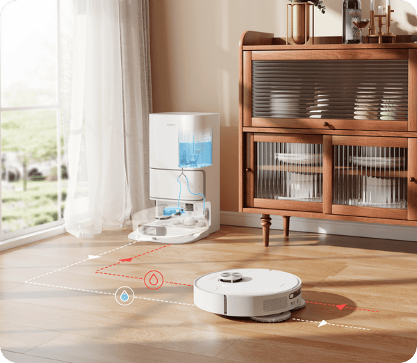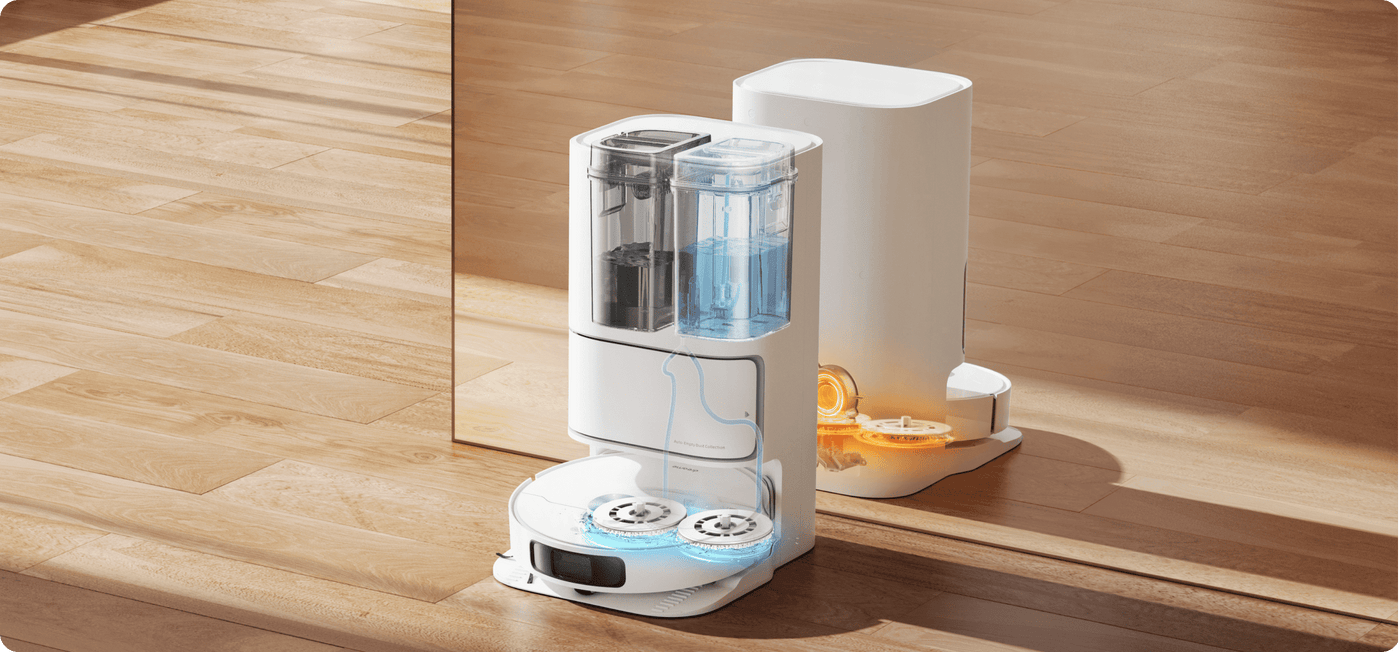 Håll dig själv borta från städningen med automatisk tömning, tvätt av moppen, torkning med varmluft och tillsats av vatten, som tar itu med dina smutsiga golv i hela hemmet - så att du inte behöver göra det.