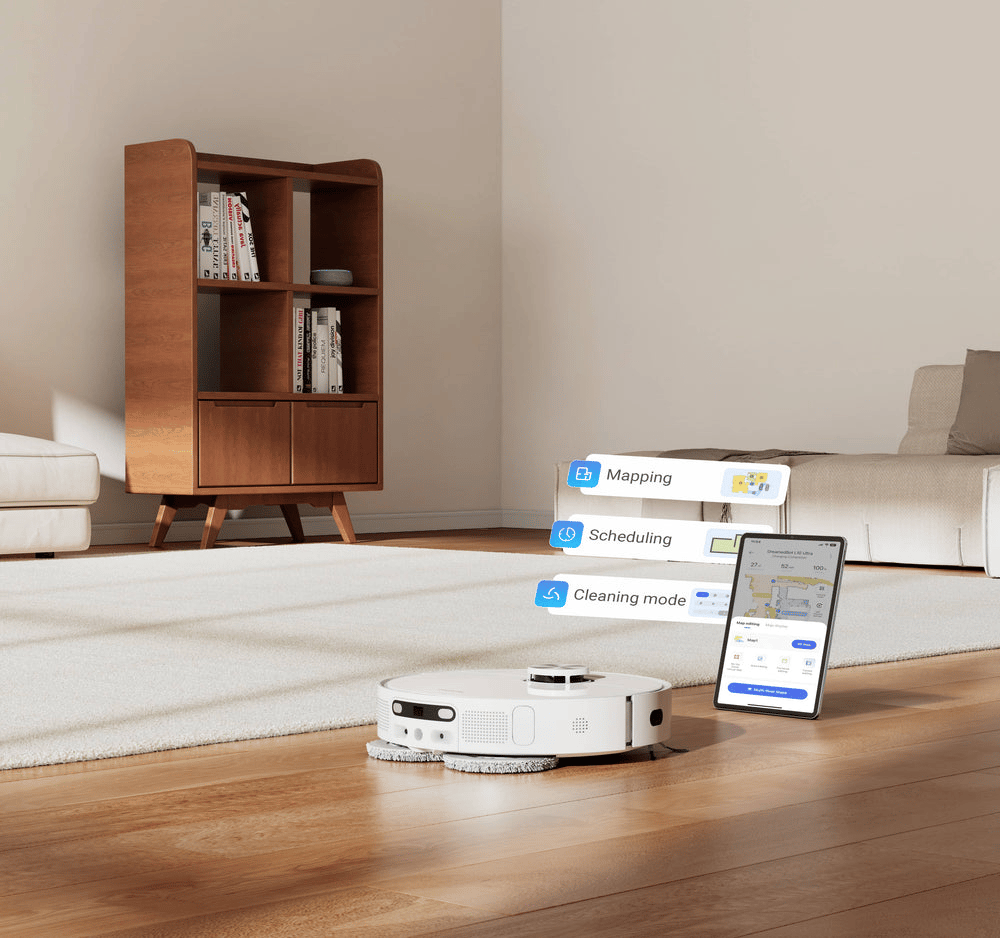 Dreamehome-appen och kompatibiliteten med Alexa, Siri och Google Assisant gör att du kan få personlig rengöring genom ett par enkla knapptryck eller helt enkelt bara med din röst. Segmentera rum, ange no-go zoner, skapa städscheman och mycket mer via appen eller säg ordet för att starta, stoppa och pausa städningen med din favoritröstassistent.