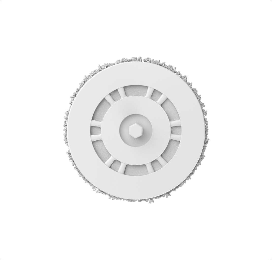 Två roterande moppkuddar med hög hastighet skrubbar under tryck för att rengöra envis smuts och kladdiga spill lika bra som en person skulle kunna göra.