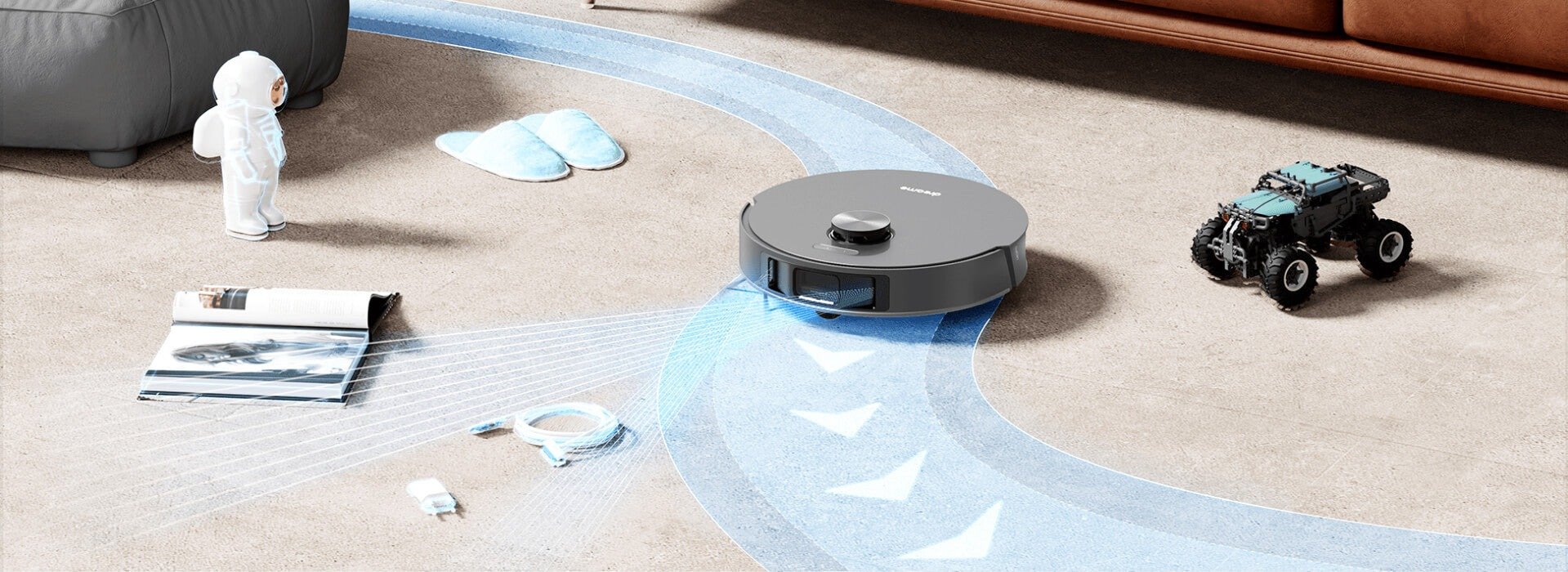 Kartlägger snabbt, optimerar rengöringsrutten och ger enastående städning för små och medelstora hem. Intelligent LiDAR-navigering skapar snabbt en karta på 5-10 minuter och det stora batteriet på 5 200 mAh ger gott om kapacitet för långa städsessioner. Spara flera kartor och använd dem för att ställa in dina städpreferenser eller visa dem offline genom att återställa appens historiska kartor.