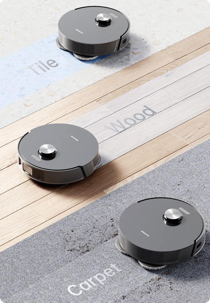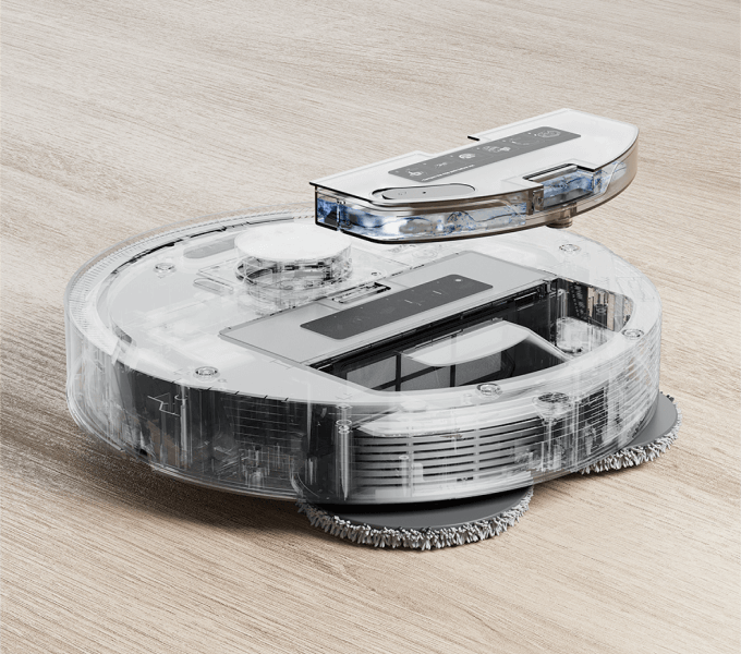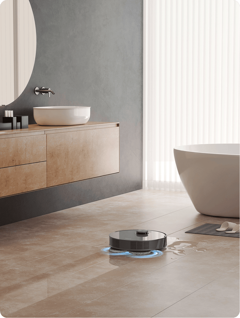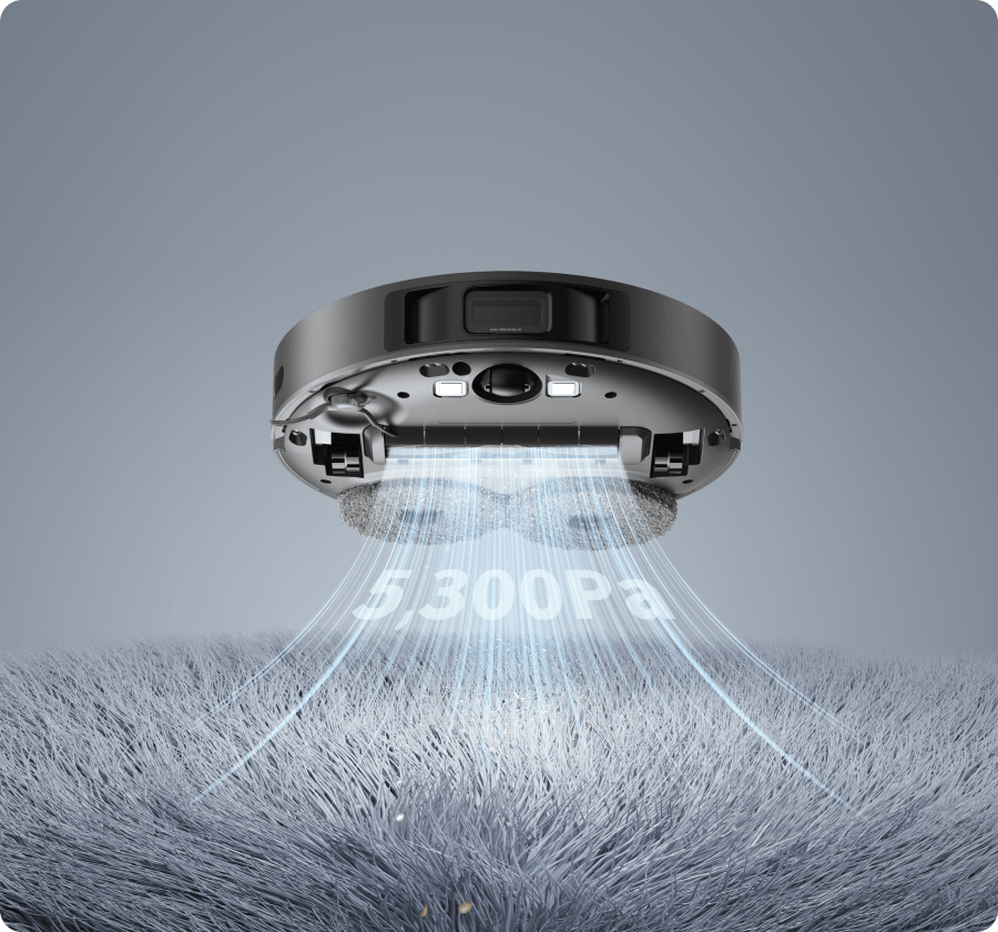 Intensiv sugkraft på 5 300 Pa och avancerade dubbla roterande moppar ger mångsidig automatisk rengöring av både mattor och hårda golv.