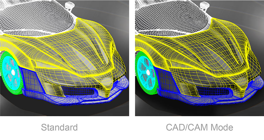 Det revolutionerande CAD / CAM-läget ger överlägsen kontrast på 3D färglinjer för att skilja dessa från resten. För tydligt framstående detaljer i komplicerade linjeskisser kan du enkelt ändra skärmfärg och kontrast genom att slå på CAD/CAM-läget för att visa mycket detaljerad grafisk information och aldrig missa en enda linje igen.