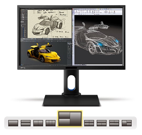 Med BenQ Display Pilot* kan du dela upp din skärm i olika partitioner för att få en bättre överblick över dina program och underlätta multitasking.