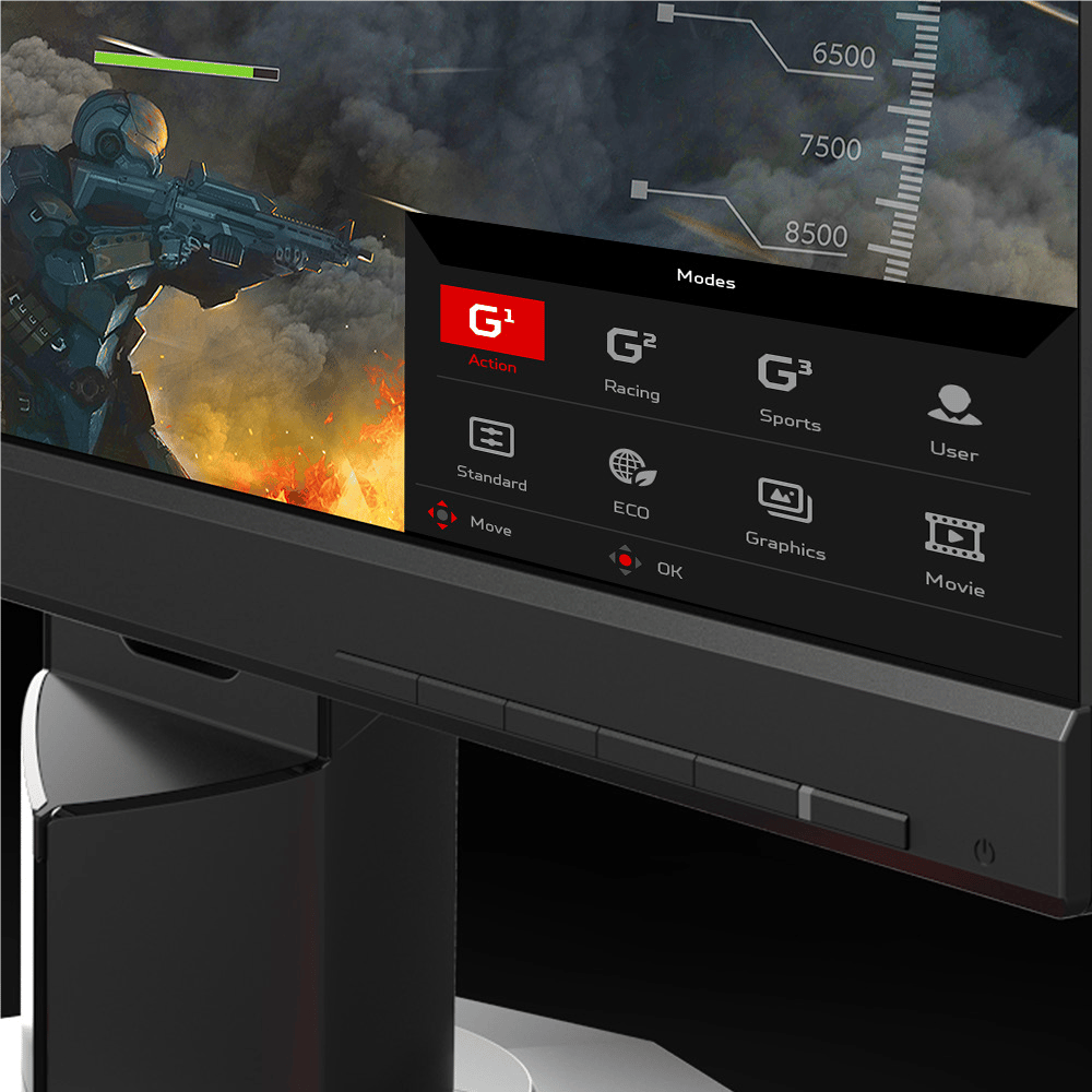 Predator GameView-teknologin gör att du kan ställa in ljusstyrka, finjustera färgåtergivning och lägga till siktpunkter som gör det enklare att skjuta från höften. Spara dina inställningar i tre olika profiler som du när som helst kan växla mellan.
