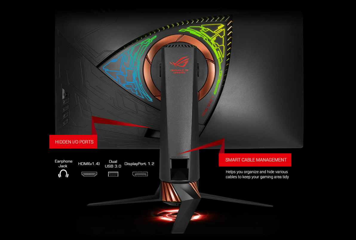 ROG Swift PG27VQ har en rad olika anslutningsmöjligheter, inklusive DisplayPort 1.2 och HDMI. Det finns även två USB 3.0-portar som kan användas för att ladda mobila enheter under spel eller för att ansluta tangentbord eller mus.