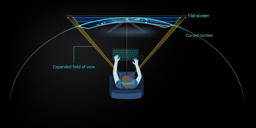 ROG Strix XG27VQ är en välvd 27-tumsskärm med en välvning på 1800R som förbättrar ditt synfält och ger en bättre spelupplevelse. Välvningen garanterar att alla bildpunkter på skärmen visas på samma avstånd från dina ögon, vilket ökar komforten även under långa spelpass. Du får bredare betraktningsvinklar med mindre förvrängning och färgskiftningar.