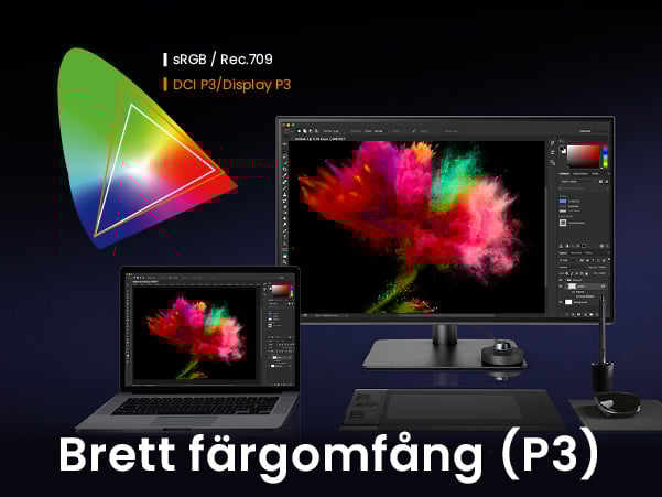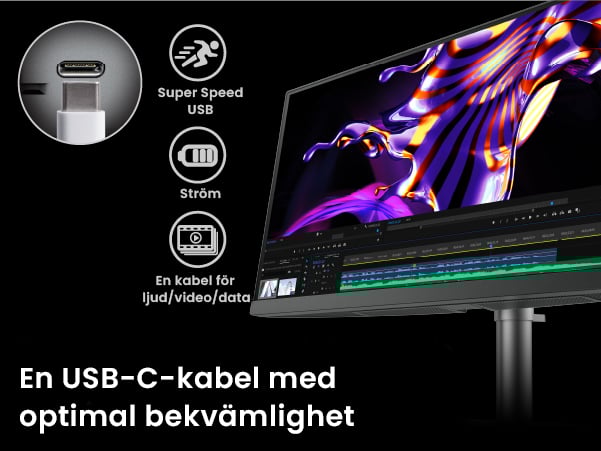 Eliminera onödig komplexitet från den kreativa processen. Thunderbolt 3 synkroniserar bilder, videor och data sömlöst, och kan ladda dina mobila enheter upp till 85 W med en allt-i-ett-kabel. PD3220U ger exakt Display P3, 4K-upplösning och HDR10. Plus, ergonomisk design som ger utmärkt komfort med HAS och flexibel lutning, svängning och rotation. (Mac och macOS är varumärken som tillhör Apple Inc., registrerade i USA och andra länder och regioner.)