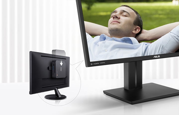 ASUS Chromebox 4 har en elegant design som tar lite utrymme då den mäter endast 148,5 x 148,5 x 40 mm. Varje enhet har också ett nydesignat, låsbart VESA-fäste som säkert fästs på ett stort antal ytor. VESA-fästet innehåller en monterbar gummibarriär som skyddar ytan på Chromebox 4 från vardagligt slit. Med VESA-fästet kan du också ansluta enheten till din skärm och förvandla den till din egen skräddarsydda allt-i-ett-dator.