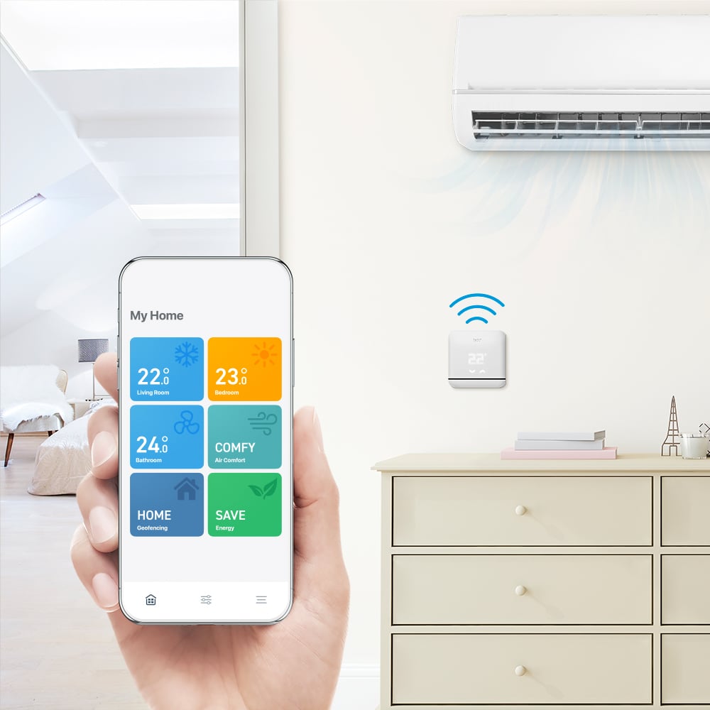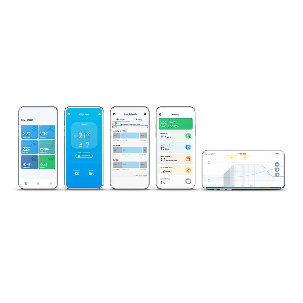 Ha alltid perfekt temperatur hemma med hjälp av smarta funktioner som Geofencing, öppet-fönster-detektering, väderanpassning och smarta scheman.