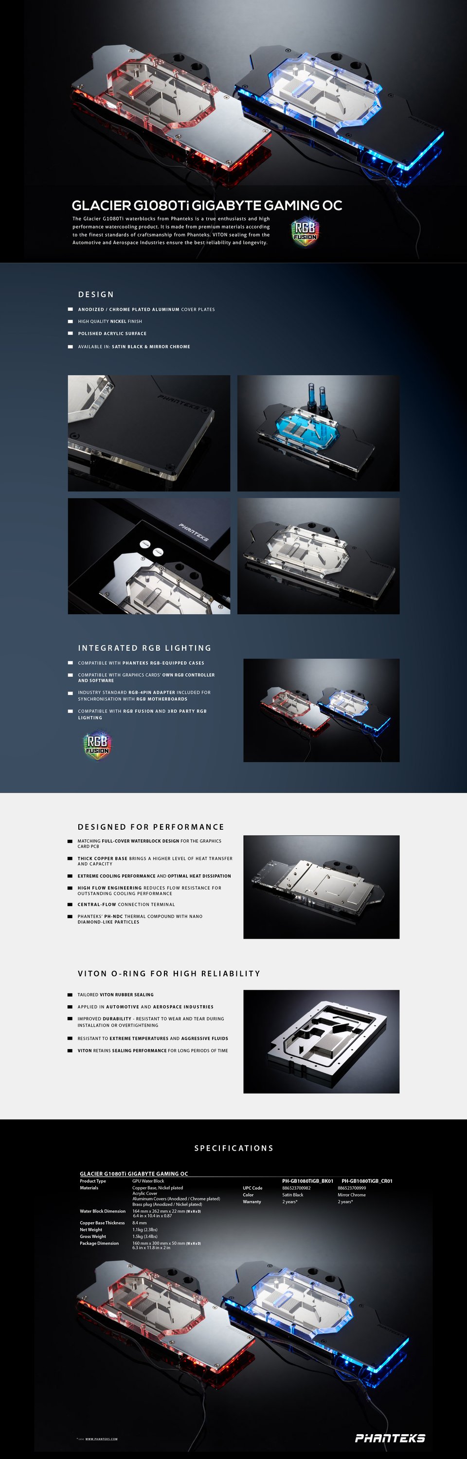 Block, Phanteks Glacier GTX 1080 Ti Gigabyte G RGB -Krom