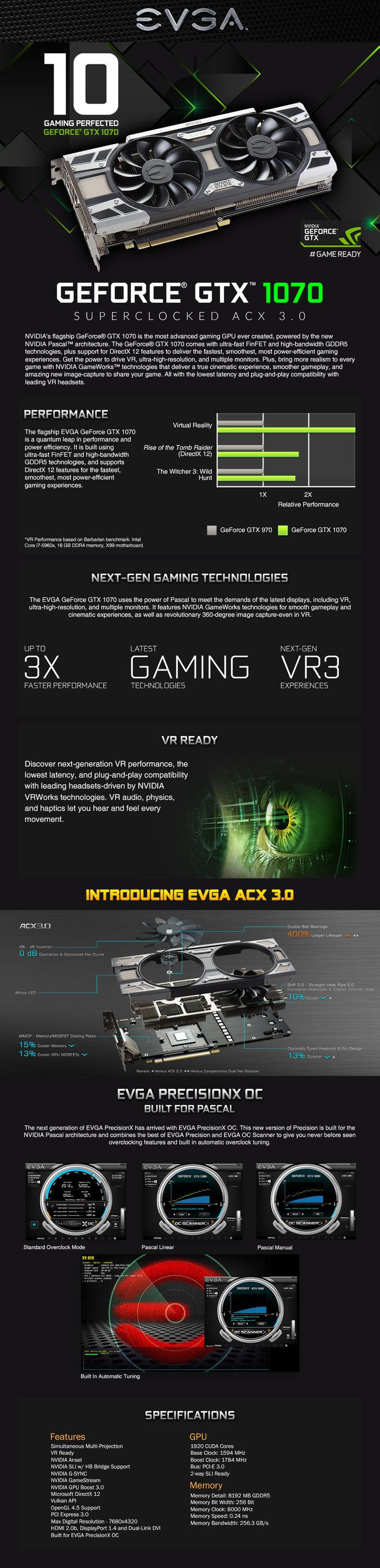 EVGA GeForce GTX 1070 8GB ACX 3.0 SC