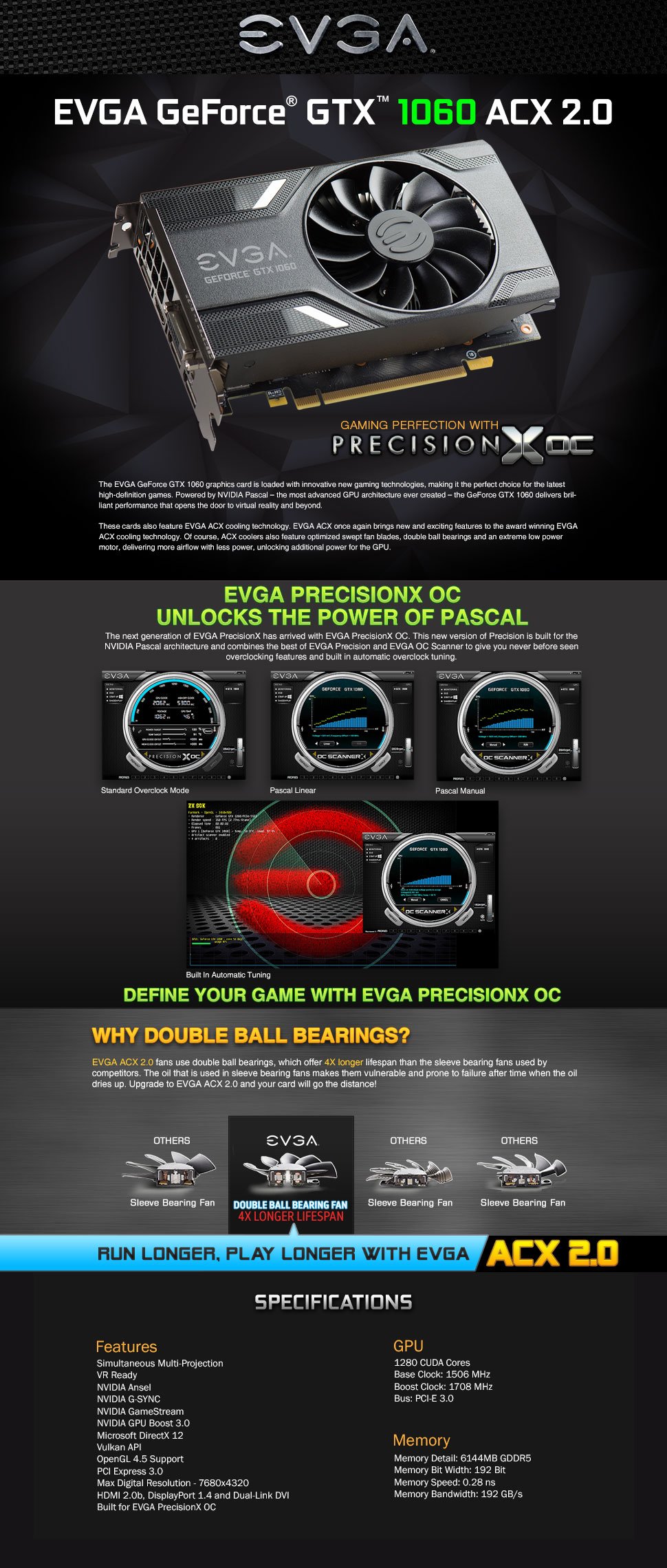 Grafikkortet GeForce GTX 1060 är laddat med innovativ ny spelteknik och gör det till det perfekta valet för de senaste high-definition-spelen. GeForce GTX 1060 drivs av NVIDIA Pascal - den mest avancerade GPU-arkitektur som någonsin skapats - och ger en enastående prestanda som öppnar dörrar till en virtuell verklighet. #GameReady.