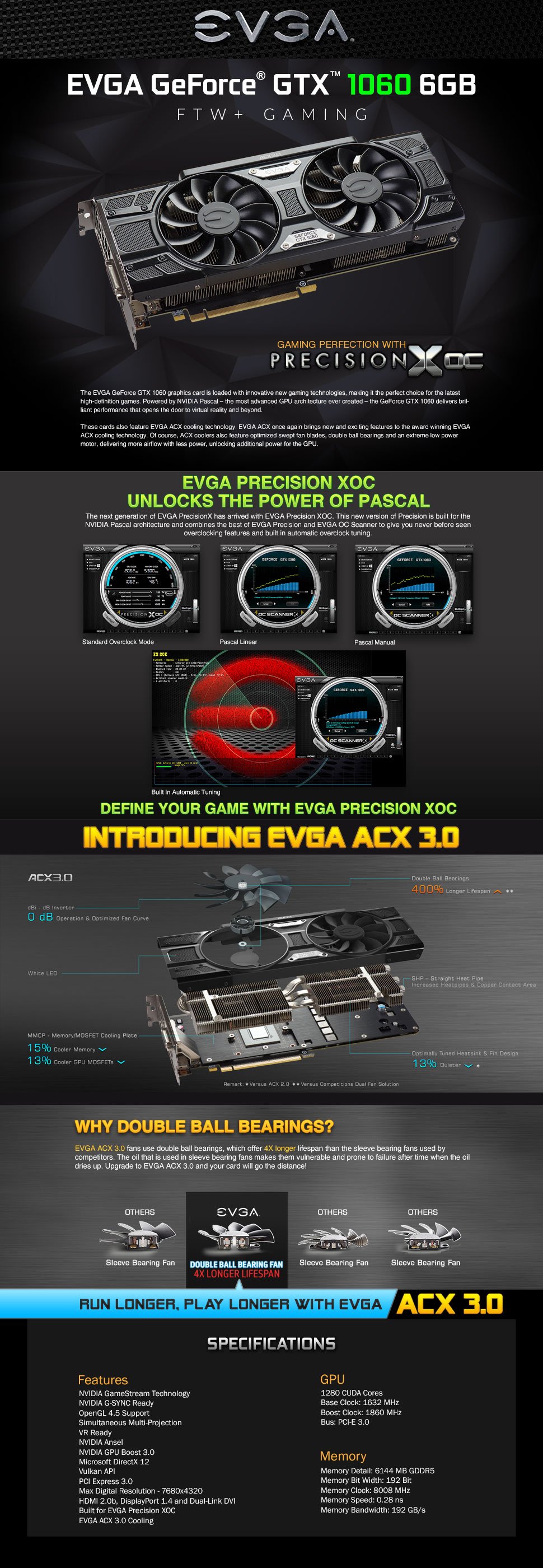 EVGA GeForce GTX 1060 6GB FTW+ Gaming ACX 3.0