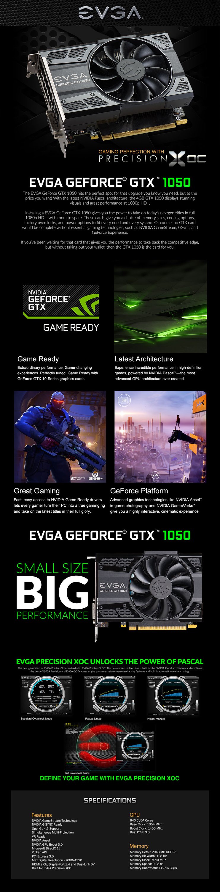 Alla förtjänar en fantastisk spelupplevelse. Det är därför NVIDIA har tagit fram det snabba, kraftfulla grafikkortet GeForce GTX 1050. Nu kan du göra din PC till en sann speldator med teknik från NVIDIA Pascal - den mest avancerade GPU-arkitektur som någonsin skapats. Den innovativa NVIDIA Game-Ready-tekniken ger varje spelare möjlighet att uppleva de senaste titlarna fullt ut. #GameReady.