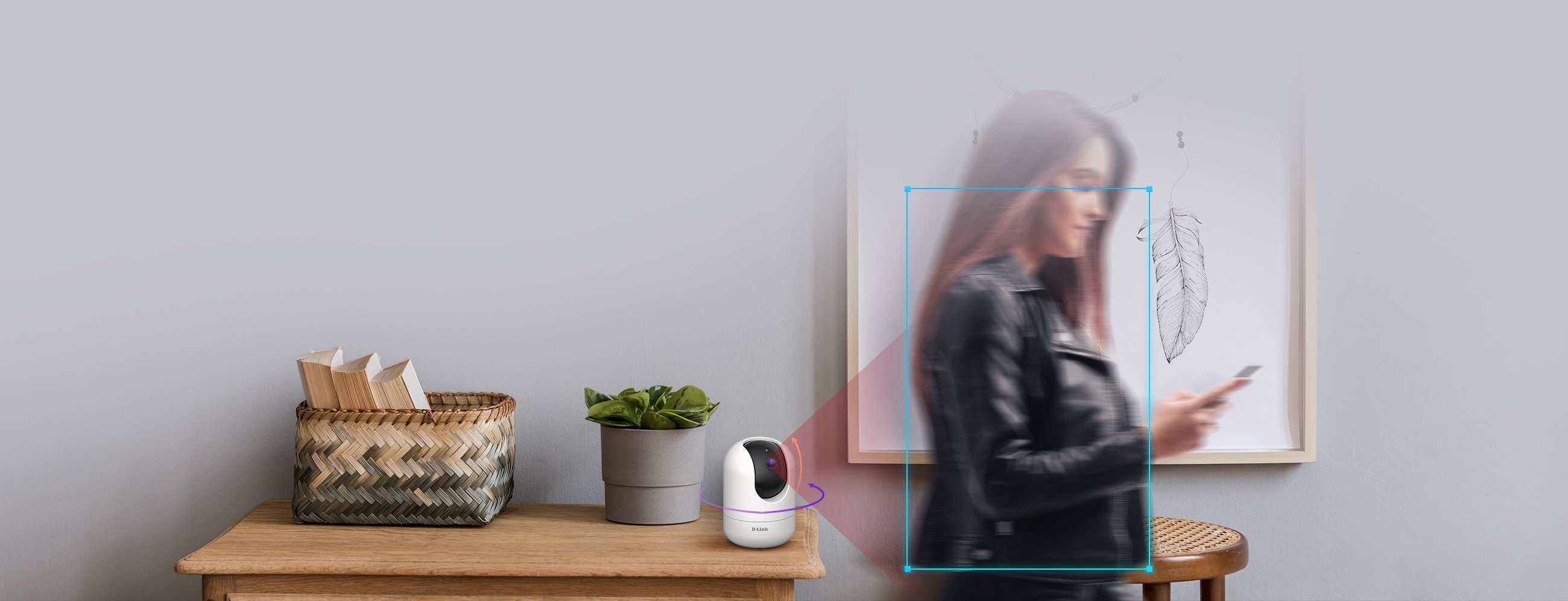 Med inbyggd AI-baserad personupptäckande kan du ta reda på exakt när en människa identifieras, för ett smartare hemskydd. Kameran kan automatiskt panorera och luta för att följa ett rörligt objekt, med 340° betraktningsvinklar, så att du kan övervaka barn, äldre föräldrar eller husdjur, även när de rör sig.
