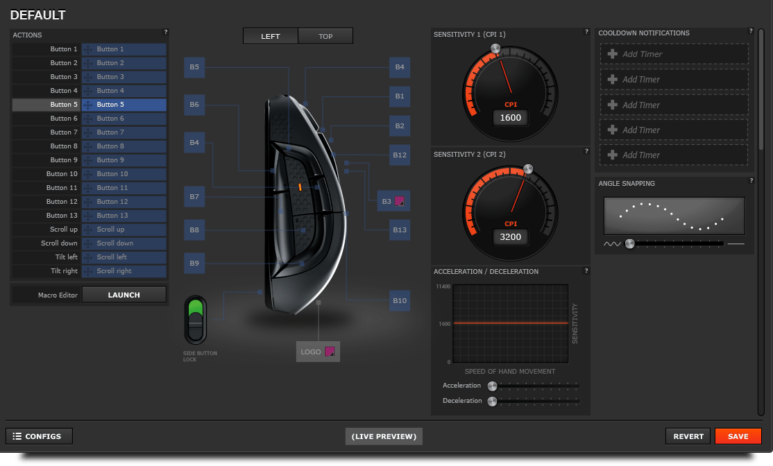 Take control of this beast with SteelSeries Engine 3. CPI, polling, lift off distance, and even macros are easily changed with the click of a button.