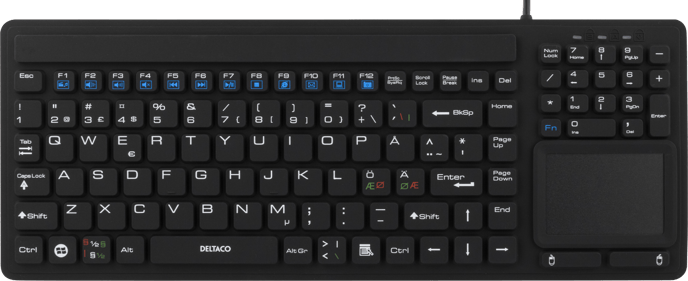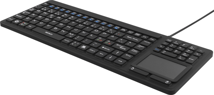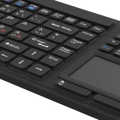 • Ett speciellt utformat industriellt tangentbord med touchpad, robust och vattentätt, tillverkat av silikon