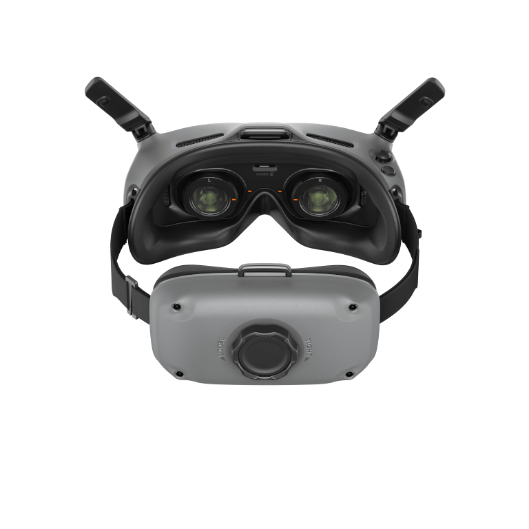 Det lätta headsetet DJI Goggles Integra har en integrerad design som kombinerar huvudband och batteri i ett, vilket gör att du slipper irriterande kablar och enkelt kan ta på och av headsetet.