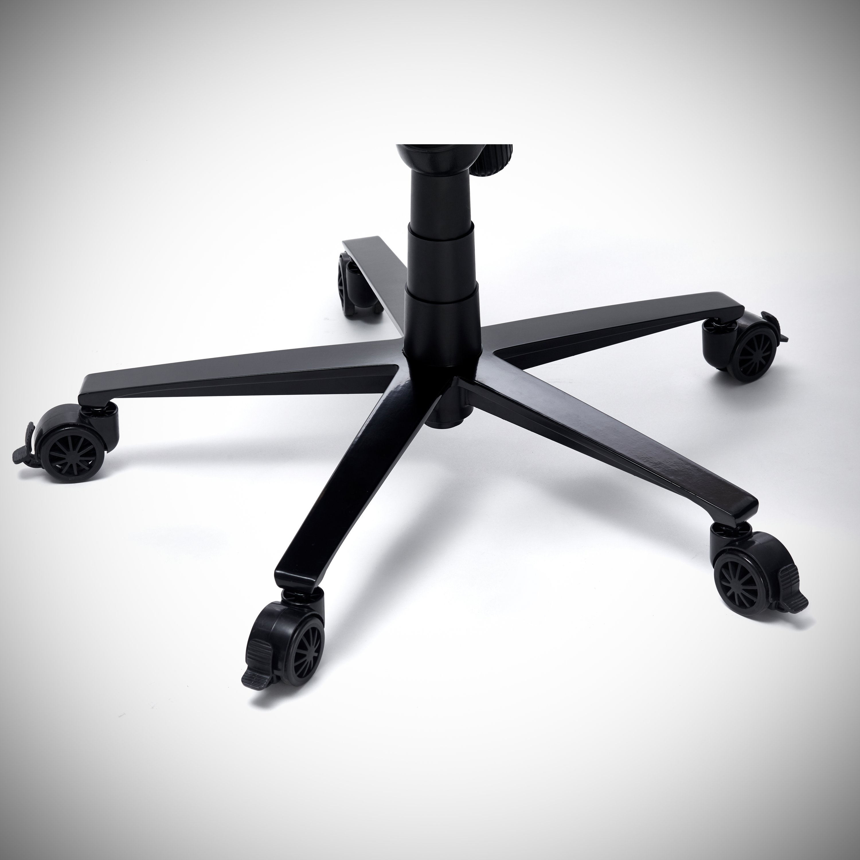 Den flerfunktionella lutningsmekanismen låter dig låsa stolen i önskad lutning så du får rätt lutning när du vill spela, och ger sitsen större lutningsdjup. Du får fullt stöd av de stora polyuretanhjulen med låsbara bromsar, som håller upp den 700 mm breda basen i förstärkt aluminium.