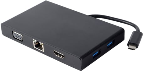 DELTACO USB-C Dockningsstation HDMI VGA RJ45 USB-A USB-C Minneskortsläsare 3.5mm