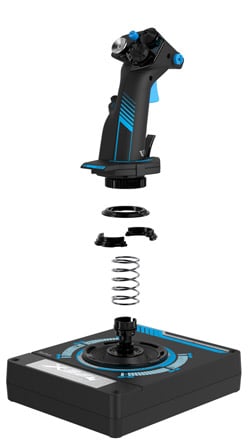 In modern space sims control is becoming more complex than in traditional atmosphere-based flight simulations, with many more inputs required to achieve true control of the space craft. Pitch, roll, yaw, backwards, forwards, up, down, left and right (the titular 6DoF) all need to be accounted for. This is why the new mini analog sticks are required; providing four more axes of control. Assignable to any in-game axis function, or programmable using the included software, running out of control options is no longer an issue.