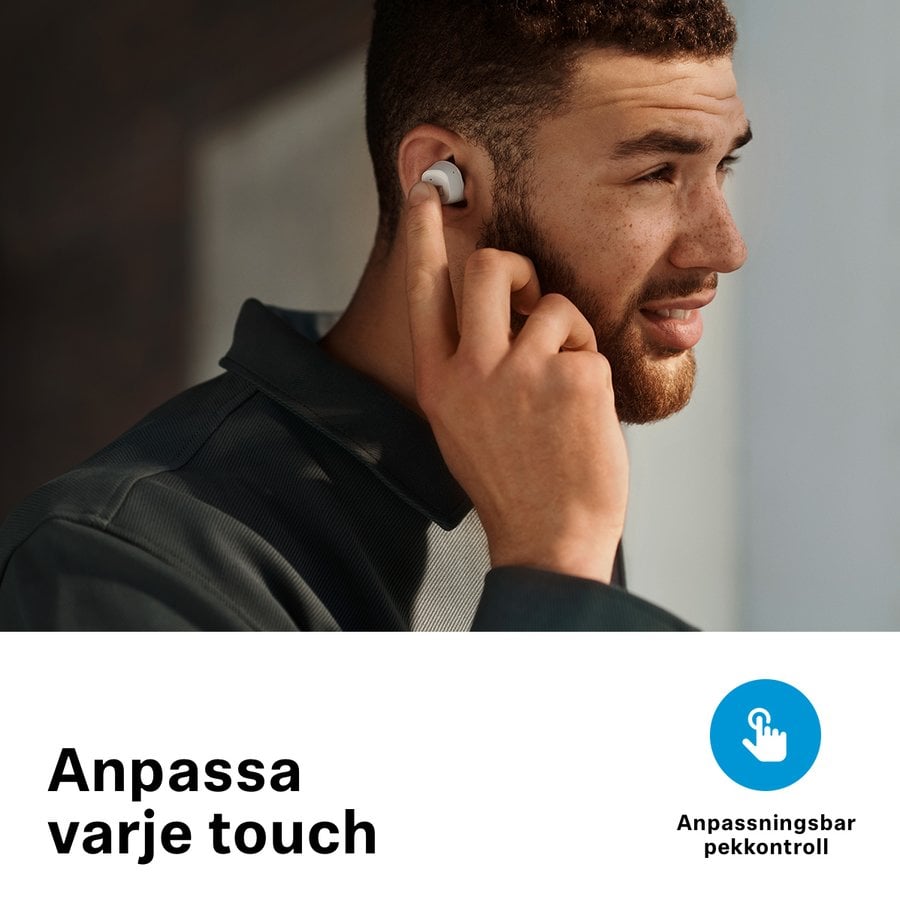 För de som alltid vill hålla sig uppdaterade, lyssna på musik och kunna svara i telefon, gör de anpassningsbara pekkontrollerna på båda öronsnäckorna det enkelt att njuta av en smartare och mer uppkopplad livsstil. De beröringskänsliga gränssnitten ger snabb åtkomst till röstassistenter som Siri och Google Assistant, samt ger dig en intuitiv kontroll över både din musik och dina samtal.