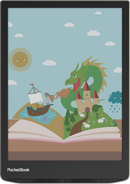 Enheten är utrustad med den förbättrade E Ink Kaleido™ Plus färgskärm med stöd för 4096 färger och ännu bättre mättnadsprestanda