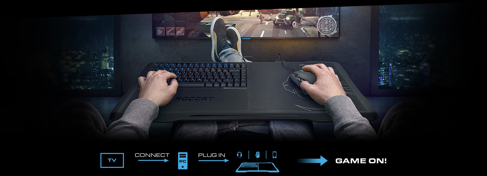 Sofftangentbordet ROCCAT Sova är höjdpunkten av komfort och har testats med hundratals timmars spelande just för att underlätta soffspelandet. Allt från den högst ergonomiska formen byggd av hållbar plastkomposit och de vadderade delarna på undersidan, till det perfekt placerade handledsstödet, garanterar att allt känns lika obesvärat - oavsett om det gäller en enda match eller en hel maratonsession. Sova designades från grunden för att ersätta skrivbordet och göra knäna och soffan till en perfekt kombination.