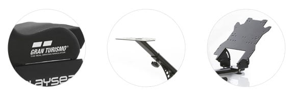 The Playseat® Gran Turismo racing seat features Gran Turismo® graphics. A patented folding system allows for easy storage. The seat is outfitted with an extra-strong, black, powder-coated tubular steel frame and a special pedal support plate with a high-tension spring and wire system. As a result, the seat feels stable and authentic, as though you're driving a genuine racecar. The pedal plate also supports multi-point tuning for the gas and brake pedals and the steering wheel support, so you can fine-tune the action to your liking.