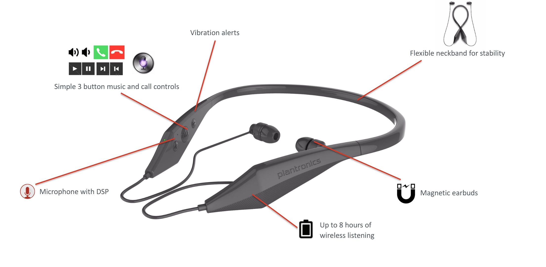 - Magnetic earbuds stick together when not in use•Locate your lost headset with Plantronics Hub, our free mobile app