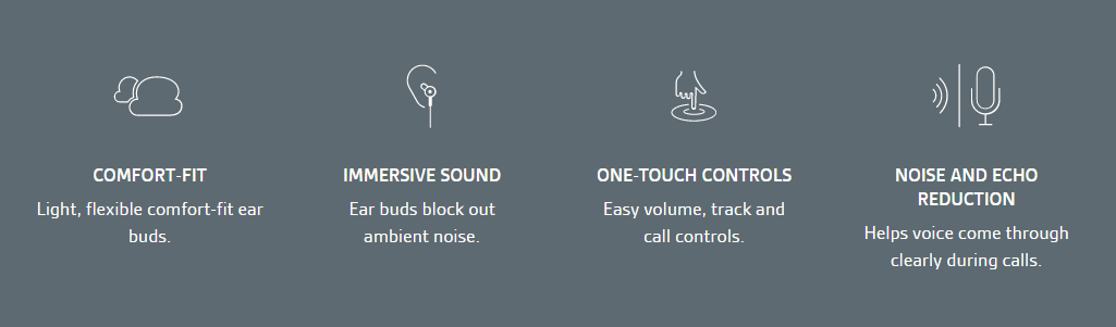 When it's time to immerse yourself in music, BackBeat 100 Series comfort-fit ear buds block out ambient noise. During phone calls, your voice comes through clearly and vividly, thanks to a microphone and technology that reduce echoes and background sounds.
