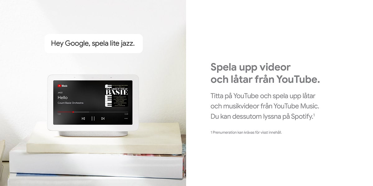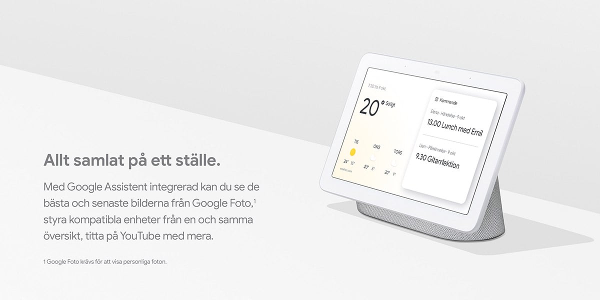 Äntligen en Google Home med skärm. Använder denna för att visa recept och kolla på Youtube/serier i köket medan jag lagar mat. Går även att styra belysning/termostat smidigt. Supernöjd!