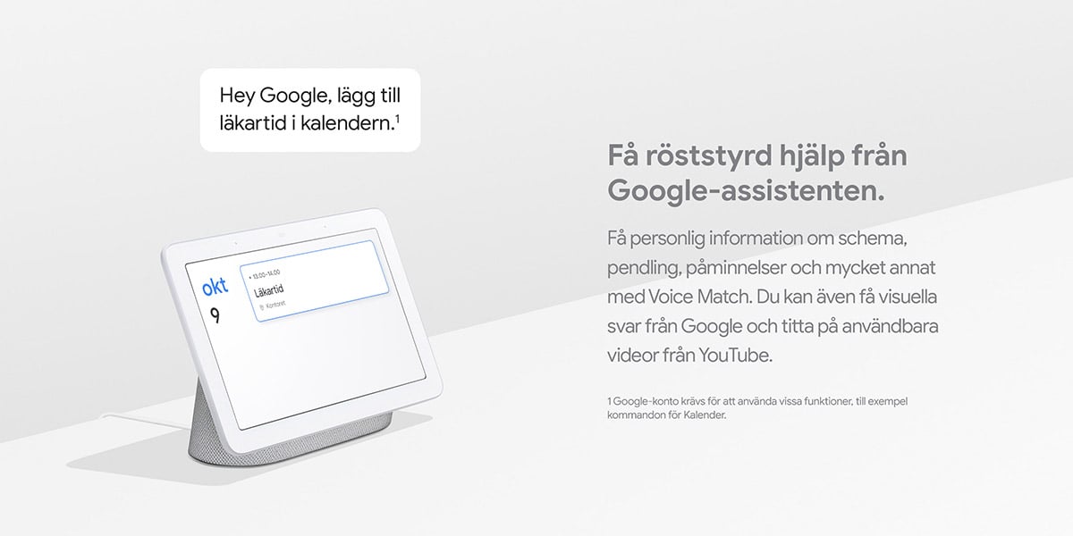 ”Hej Google, visa min kalender” Röststyrda lampor, kameror, TV-apparater och mycket mer från en enda hub. Fungerar med över 200 smarta enheter från fler än 50 populära varumärken.