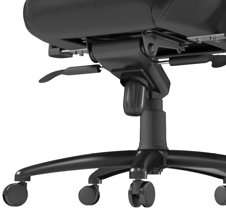 Den matta svartpulverbelagda basen på stolen består av robust massiv aluminium och stödjer vikter upp till 120 kg.