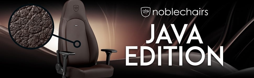 noblechairs ICON Java Edition är klädd i imitationsläder på säte och kontaktyta. Ryggstödet är också täckt i unikt PU läder för optimal hållbarhet. Imitationslädret som är tillverkat i Tyskland har en extremt mjuk struktur. Med dess mikrofina porer säkerställer det också maximalt luftflöde. Kombinationen av andningsbart, mjukt PU läder och kallskum med öppna porer säkerställer en bekväm upplevelse, även för längre spelsessioner