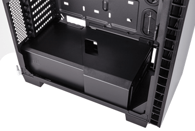 Minska fläktljuden från din dator genom att inte överarbeta dina fläktar. Genom att ta bort enhetsfacken bakom fläktintagen har vi skapat en effektivare och direktare väg för luftflödet att nå de varmaste komponenterna – din CPU och GPU. Det är helt enkelt en smartare design.
