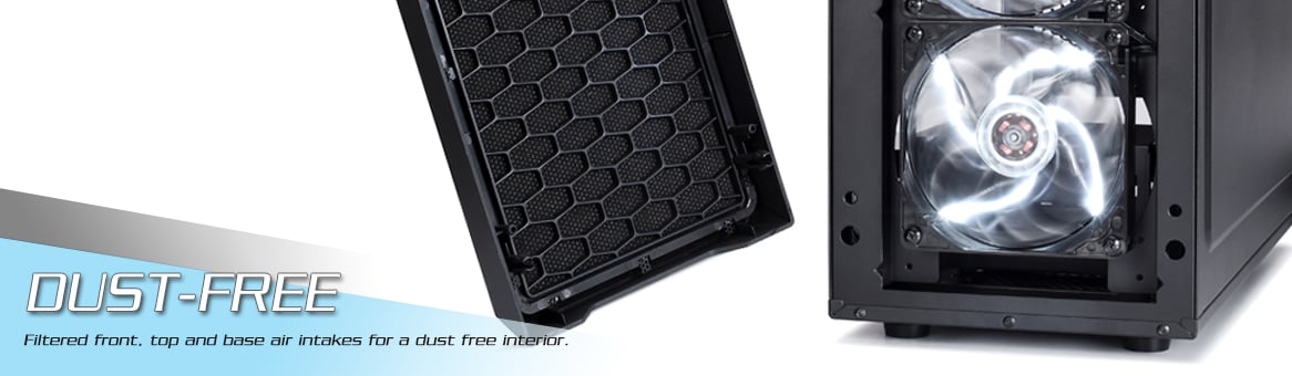 Filtered front, top and base air intakes maintain a dust-free environment while expert cable management options keep wiring tidy.