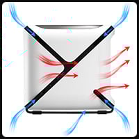 To cool the built-in hardware, the portal is equipped with air inlets at all four corners and the bottom of the housing. The air-permeable inner chamber is further equipped with included 120mm intake and 80mm exhaust fan, for a stable airflow for basic Office and Home Theater PCs.